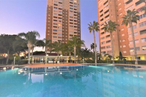Apartamento en primera linea de playa. Dos dormitorios con armarios empotrados. Un cuarto de baño completo. Salón comedor con salida a terraza con vistas panorámicas. Cocina equipada con electrodomésticos. Lavadero. Sin amueblar. Piscinas, jardines. Pistas de tenis y pádel. Zonas deportivas. Zonas infantiles. Barbacoa. Zona petanca. Chiringuito de verano. Restaurante dentro de la urbanización. Parking libre. Muy bien comunicado con zona comercial y estación del tram.