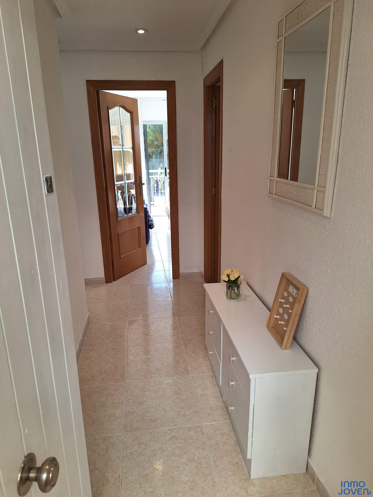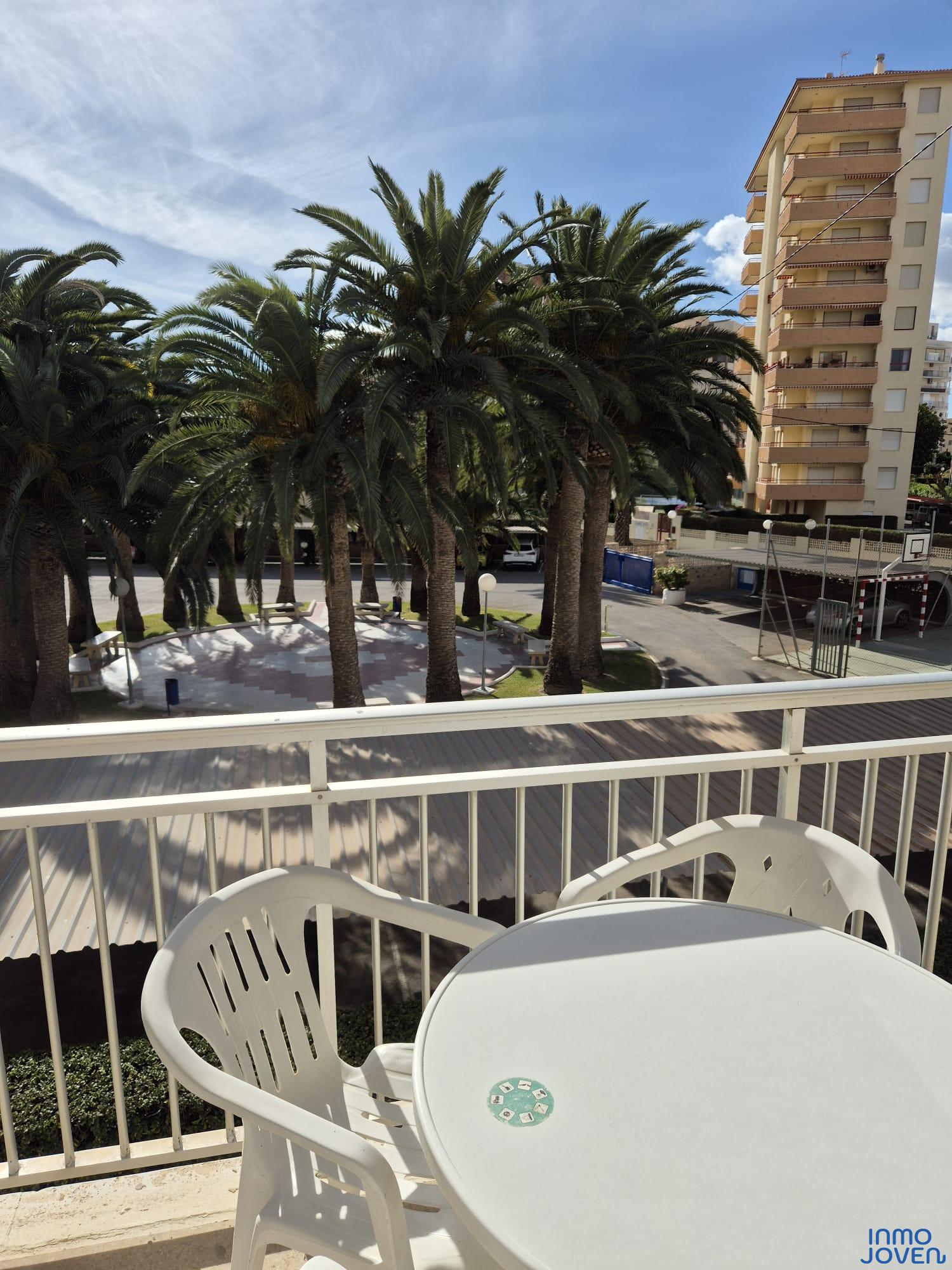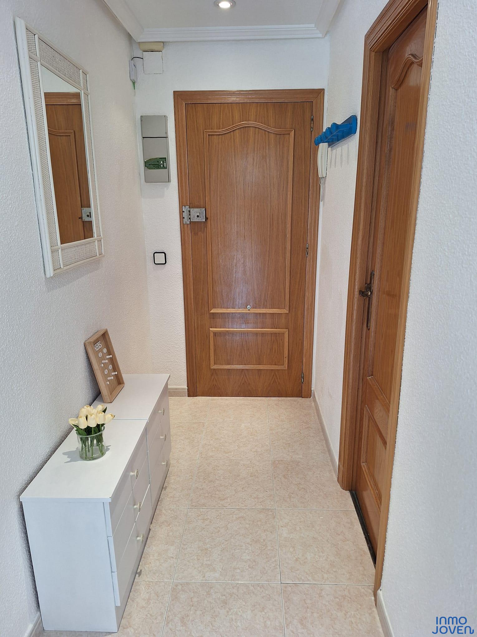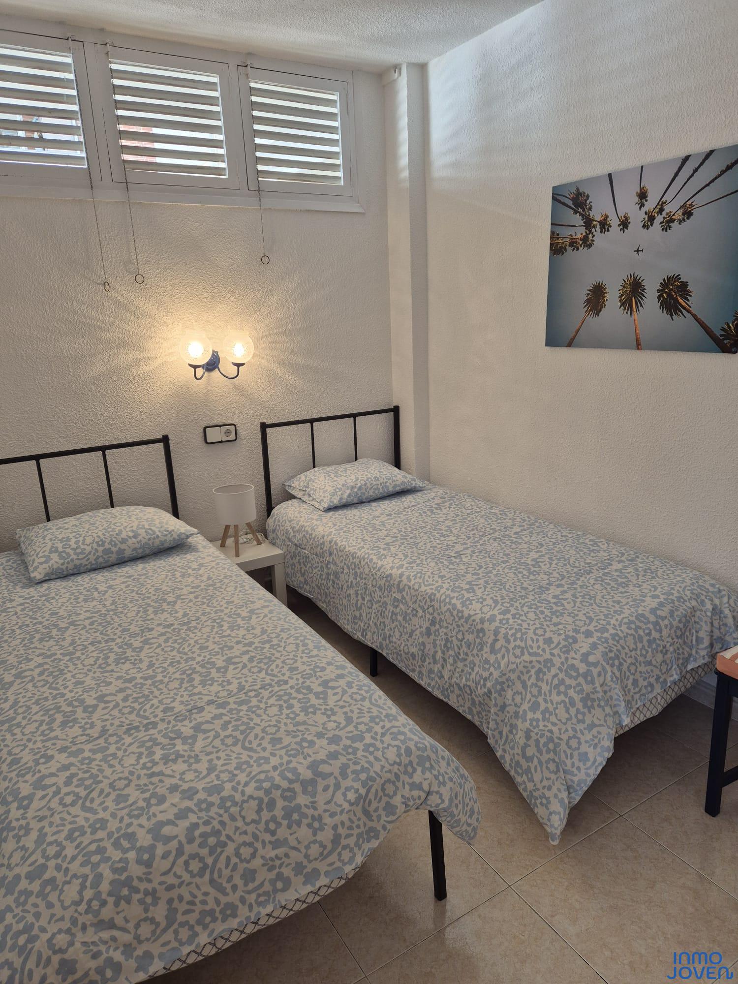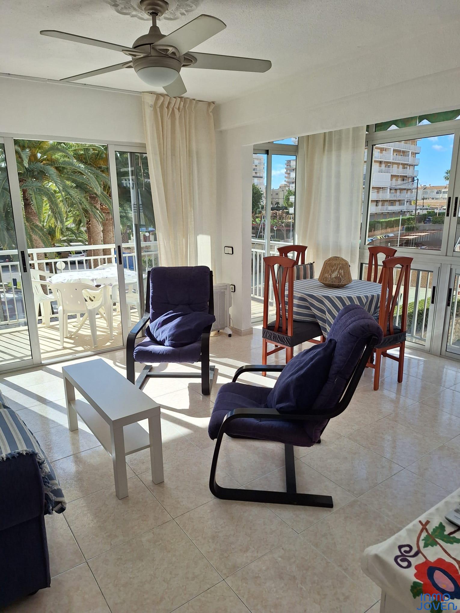 Apartamento en primera línea de playa, Edificio Mediterráneo . 2º Dos dormitorios con armarios empotrados. Dormitorio principal con salida a amplia terraza con vistas al mar y panorámicas . Un cuarto de baño completo. Salón comedor con salida a terraza con vistas al mar. Cocina equipada con electrodomésticos. Residencial muy cuidado con acceso a dos calles, salida directa a la playa, rodeado de comercios y ocio, muy bien comunicado con parada de tranvía y autobús. Parking en superficie.