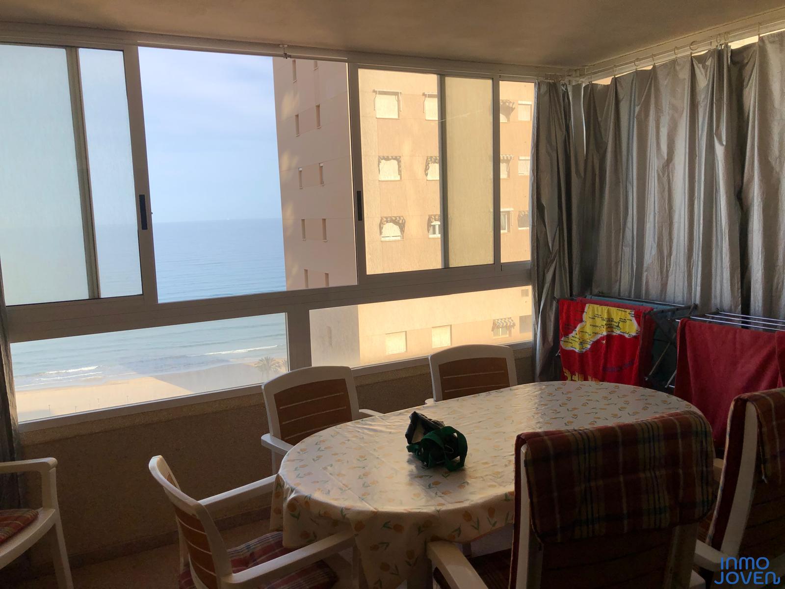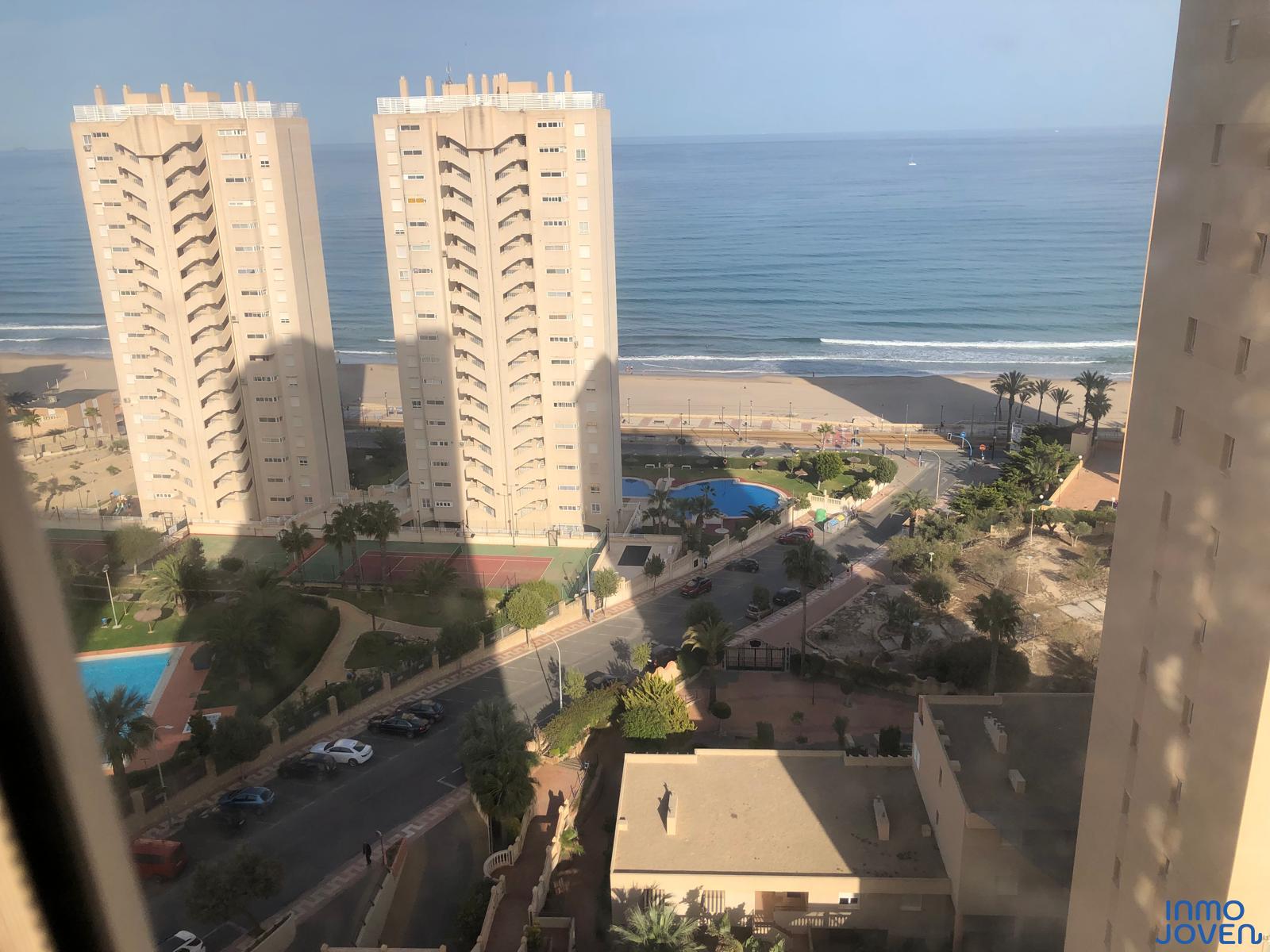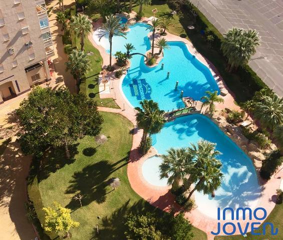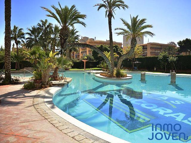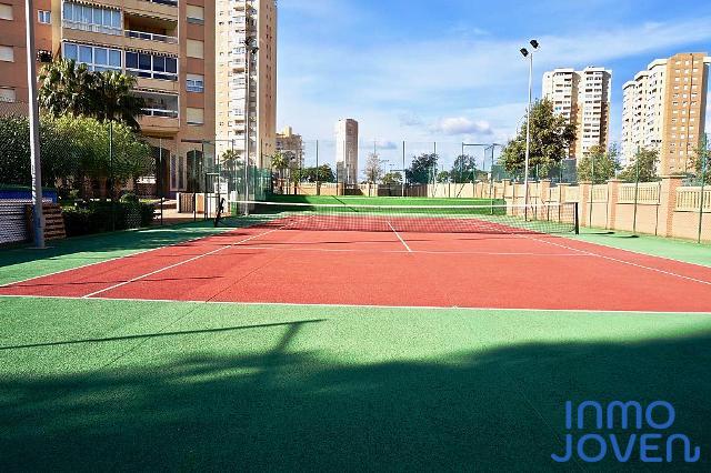 Apartamento en playa Muchavista. Tres dormitorios con armarios empotrados. Dos cuartos de baño completos. Salón comedor con salida a terraza con vistas al mar. Cocina equipada con electrodomésticos. Zona lavadero , secadora. Totalmente amueblado . Equipado con A/A frio y calor. En perfecto estado. Plaza de garaje subterránea numerada. Pistas de tenis y padel. Zonas deportivas. Zona barbacoa. Piscina cubierta. Piscina tropical. Jardines. Gimnasio. Muy bien comunicado con zona comercial y estación del tram.