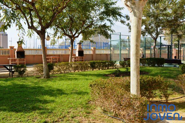 con salida directa a entrada de apartamento. Solo dos apartamentos por planta (planta superior) Una de las mejores urbanizaciones de playa Muchavista, piscina tropical , con amplias zonas verdes, piscina climatizada, varias pistas de squash, pádel y tenis, gimnasio, zona juegos infantiles y club social niños, cafetería dentro del recinto, conserje todo el año, varias salidas una a zona comercial y playa. Muy buena comunicación colegios transportes y todas las direcciones