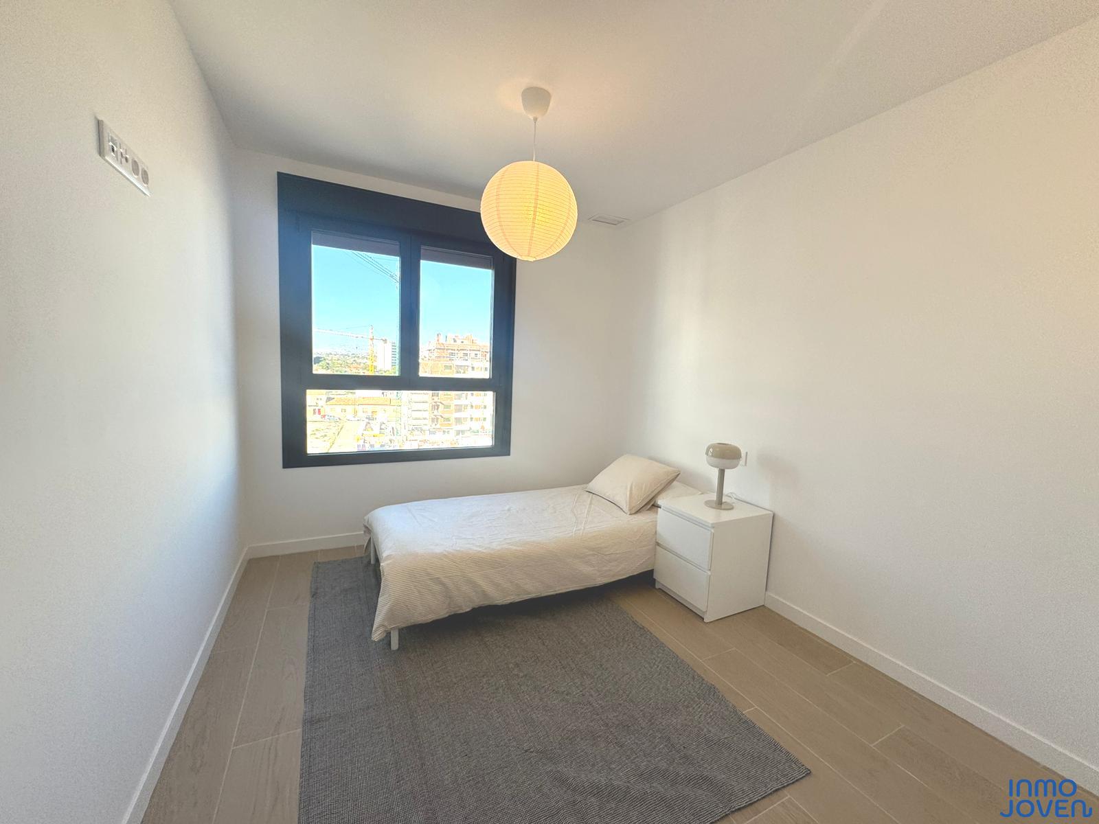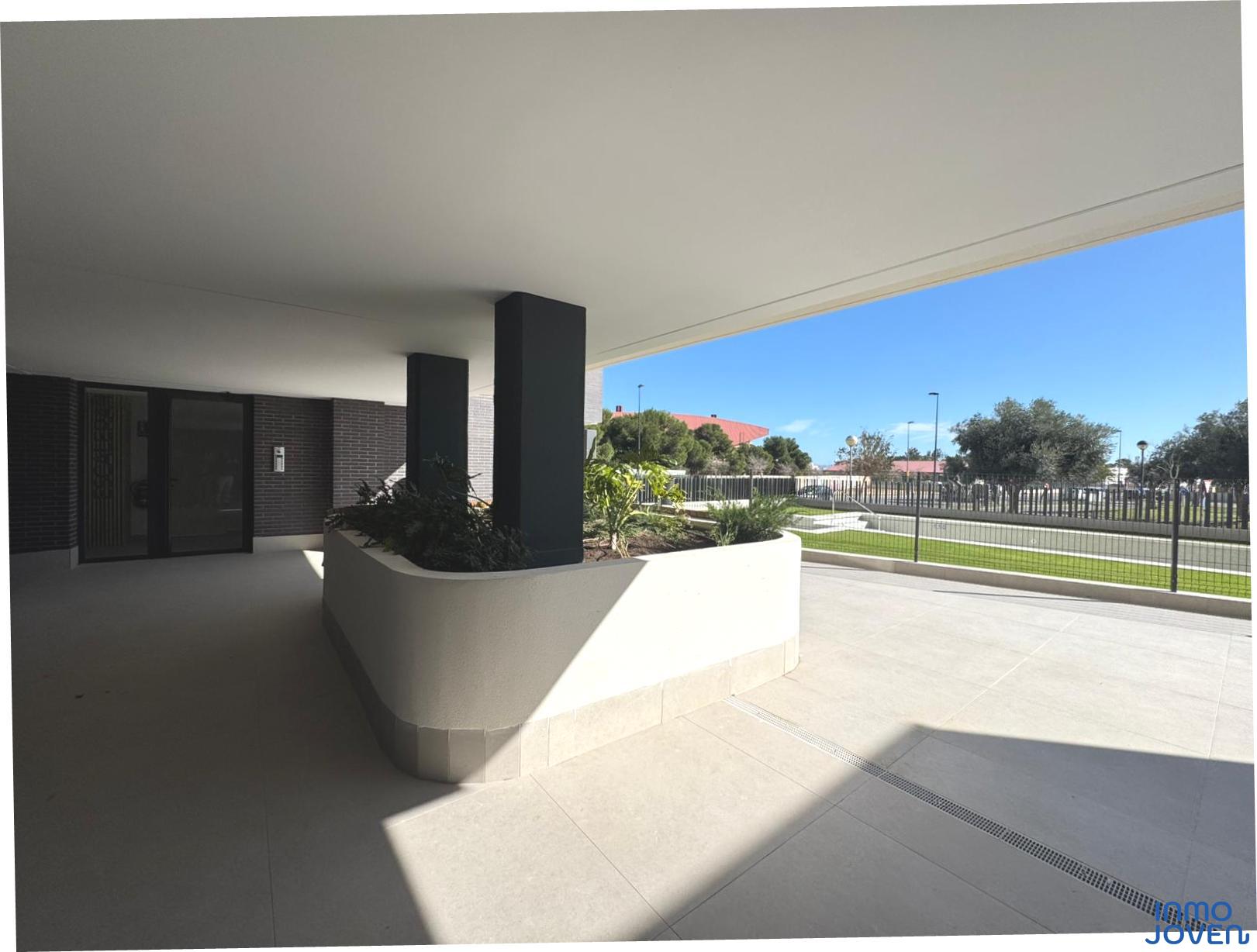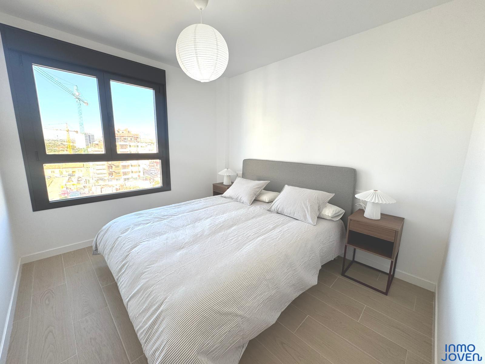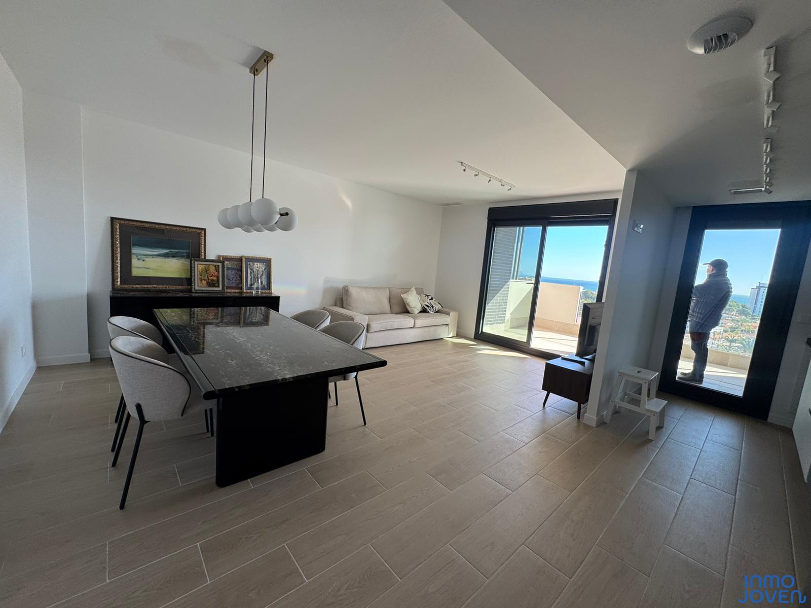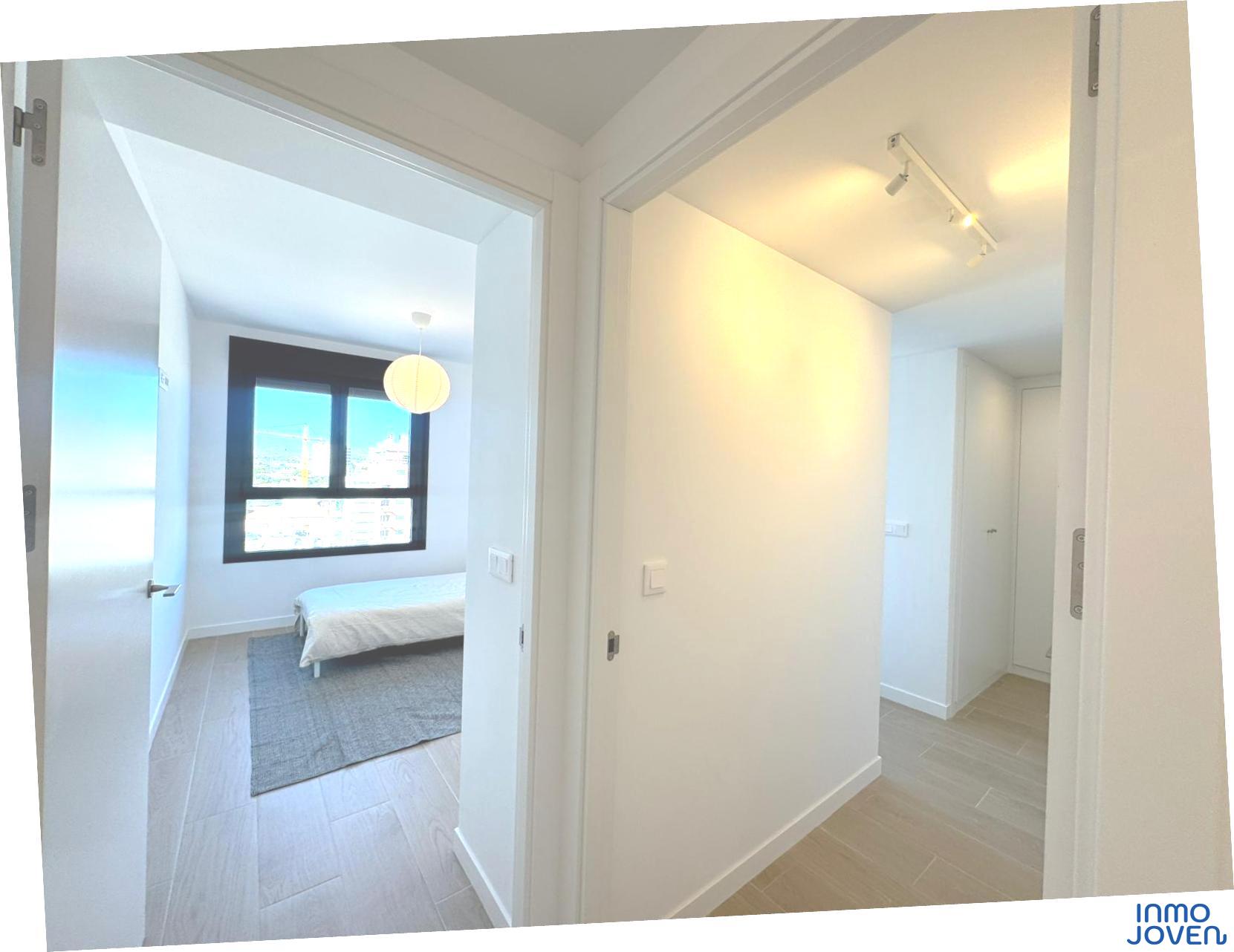 Moderno apartamento a estrenar en El Campello piso 6º. Residencial Aquamarine . Vivienda en edificio de nueva construcción. Salón comedor con salida amplia terraza con vidrio de seguridad para que las impresionantes vistas al mar y panorámicas s aprecien desde toda la estancia no solo desde la terraza.. Cocina semi – americana con acceso a terraza . Dos dormitorios con armarios empotrados, Dormitorio principal con cuarto de baño completo en suitte. Dos cuartos de baño completos. Aire acondicionado frio- calor por conductos , Aerotermia, Puerta blindada. Plaza de garaje subterránea , Residencial con piscina zona de juegos infantiles . Rodeado de servicios, comercios y fácil acceso todas direcciones y transporte.