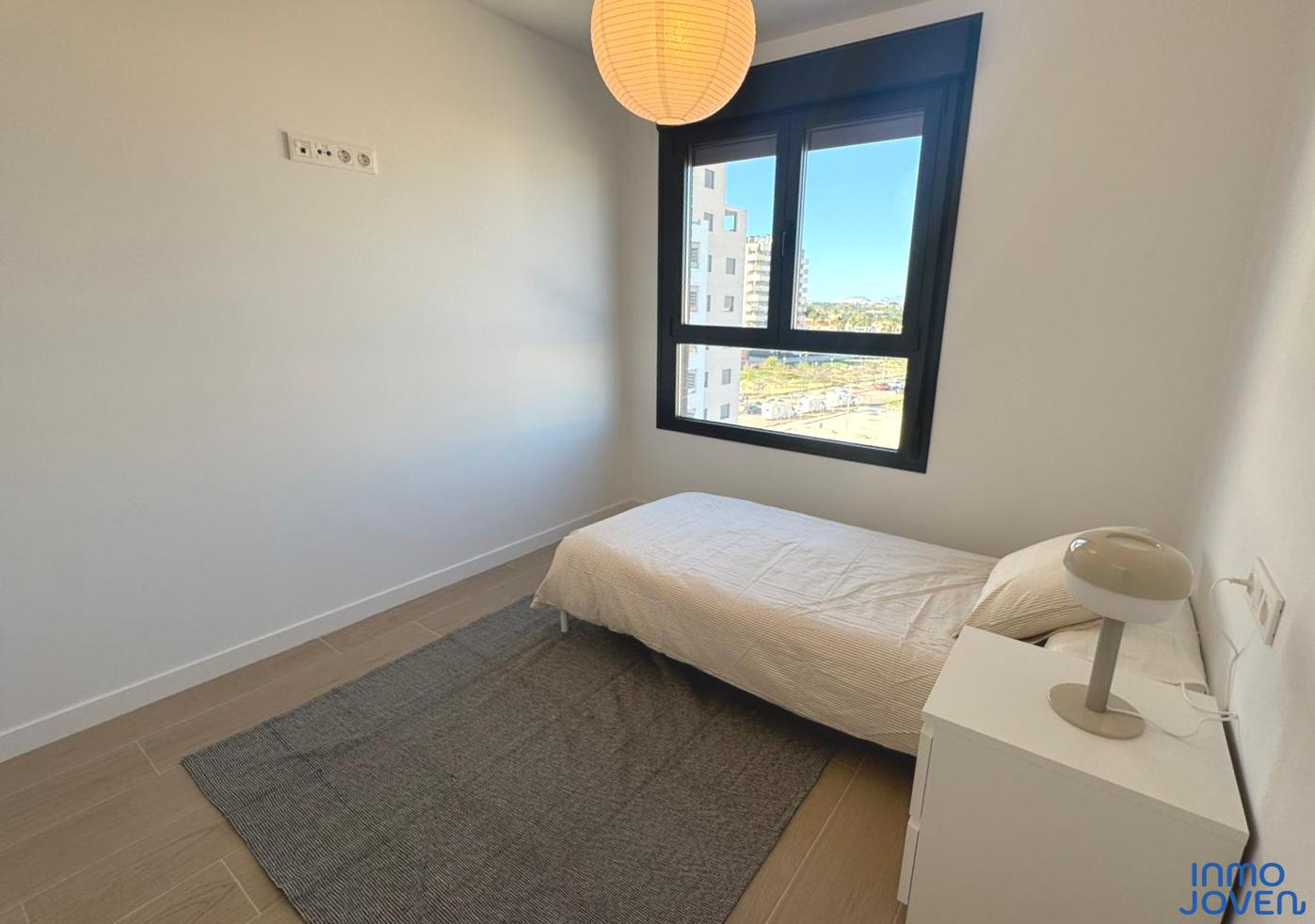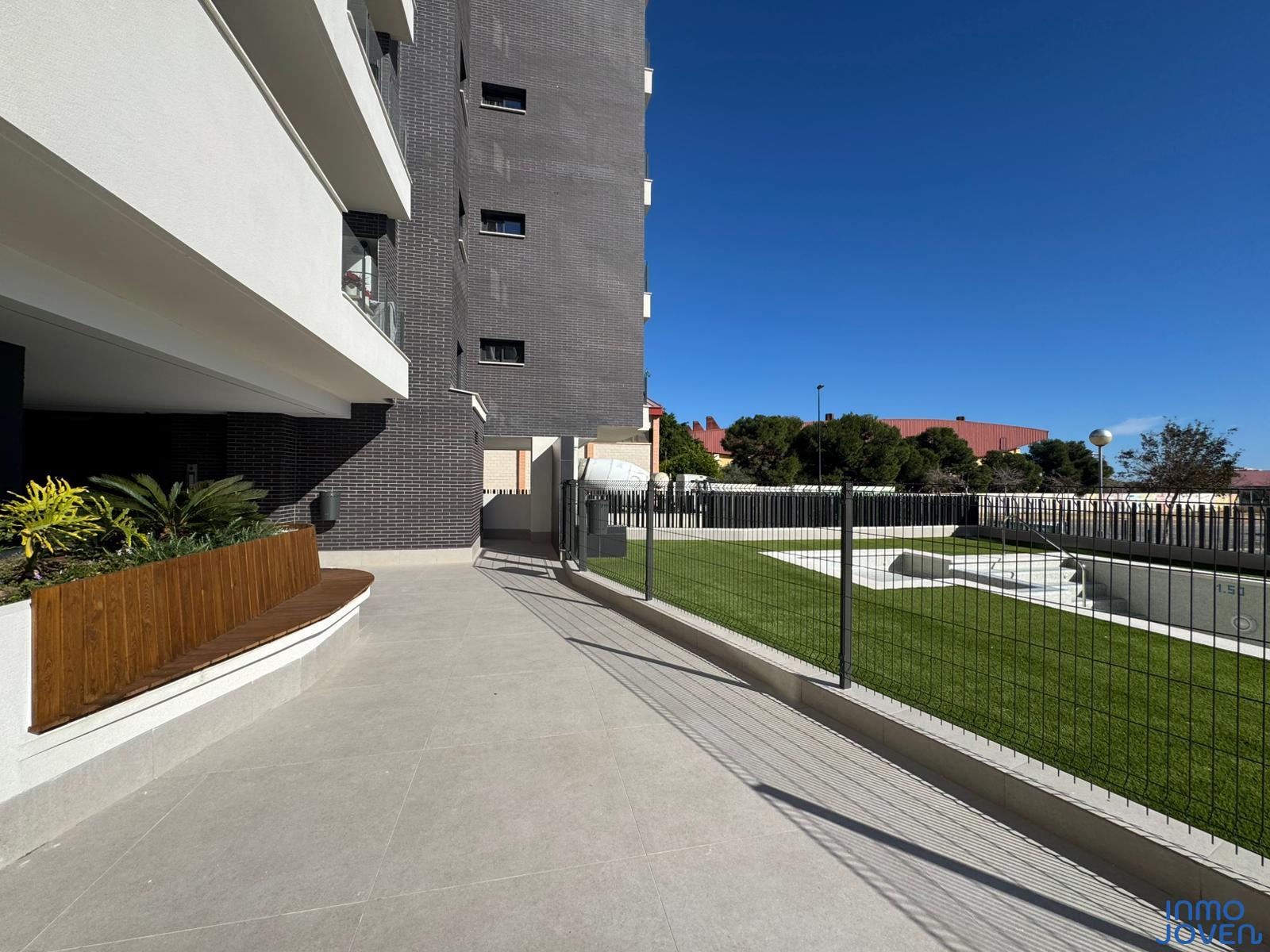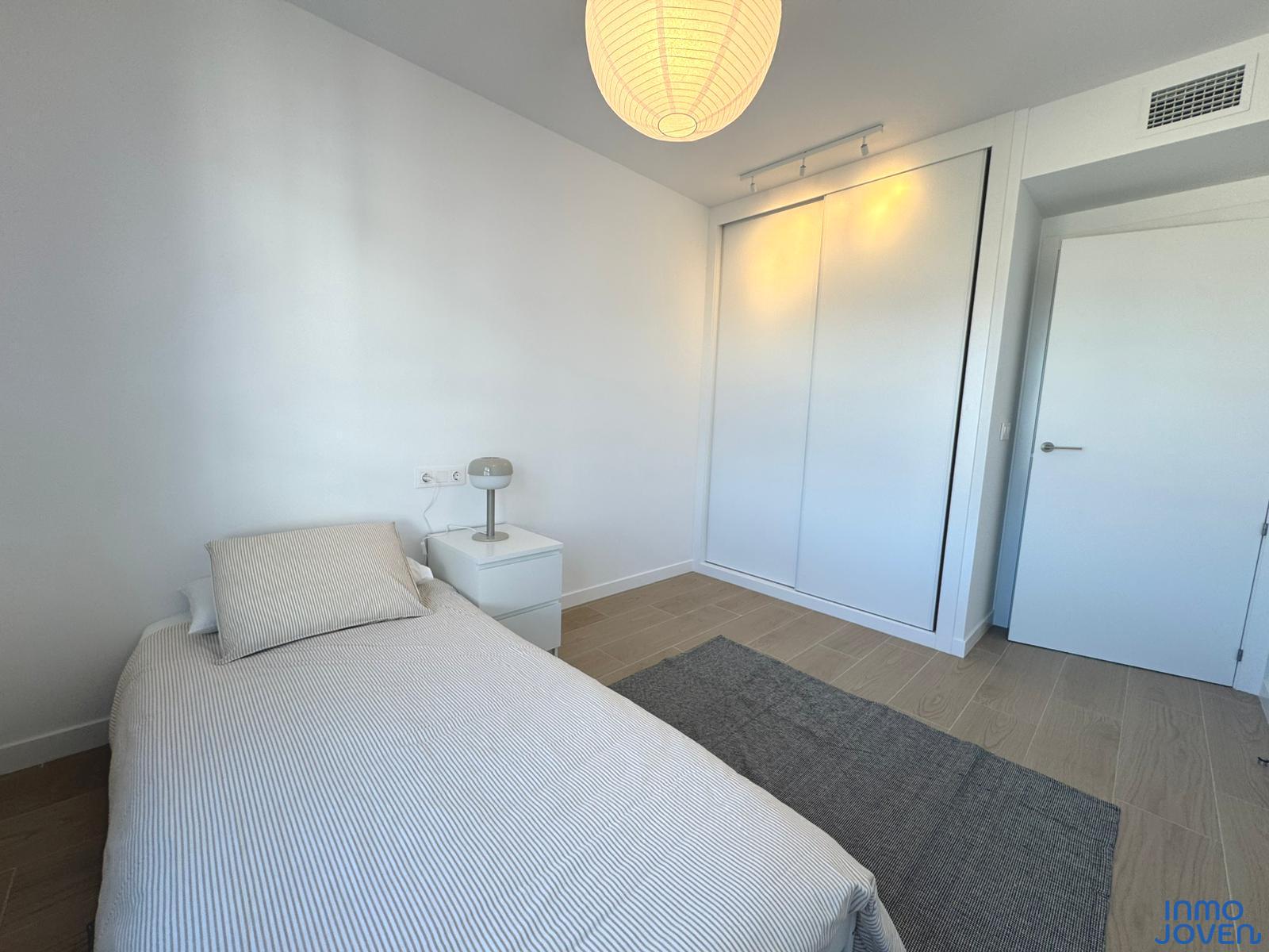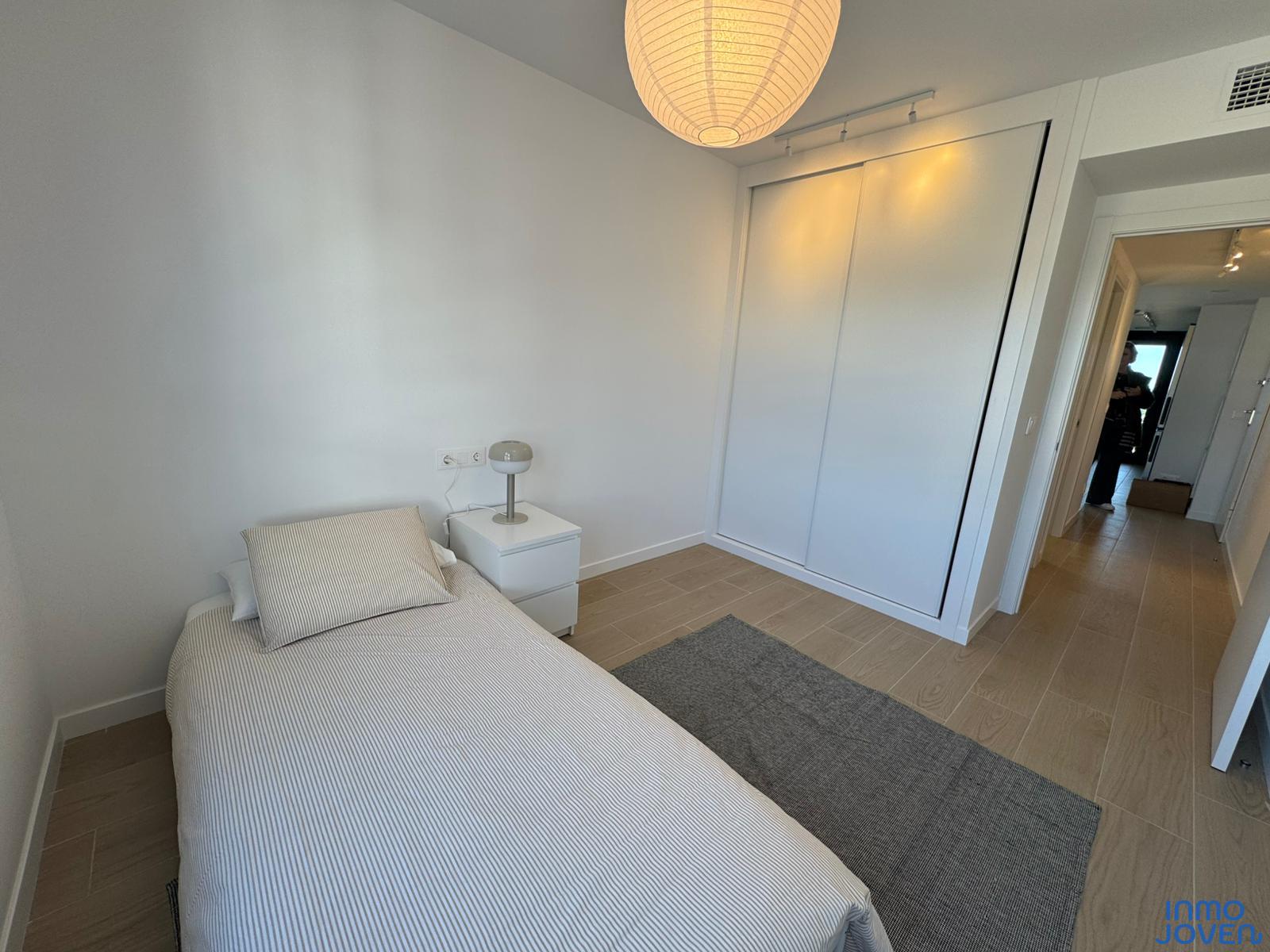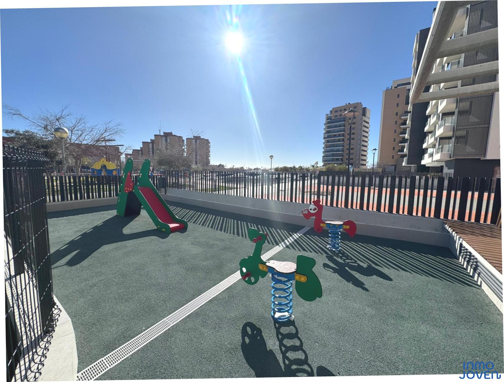 Moderno apartamento a estrenar en El Campello piso 6º. Residencial Aquamarine . Vivienda en edificio de nueva construcción. Salón comedor con salida amplia terraza con vidrio de seguridad para que las impresionantes vistas al mar y panorámicas s aprecien desde toda la estancia no solo desde la terraza.. Cocina semi – americana con acceso a terraza . Dos dormitorios con armarios empotrados, Dormitorio principal con cuarto de baño completo en suitte. Dos cuartos de baño completos. Aire acondicionado frio- calor por conductos , Aerotermia, Puerta blindada. Plaza de garaje subterránea , Residencial con piscina zona de juegos infantiles . Rodeado de servicios, comercios y fácil acceso todas direcciones y transporte.
