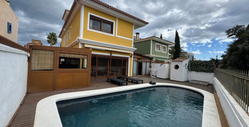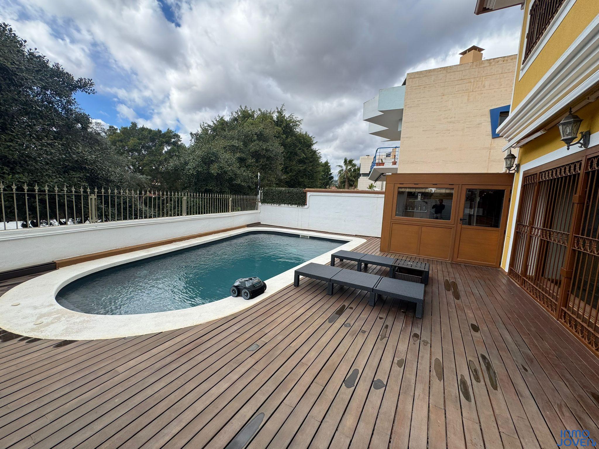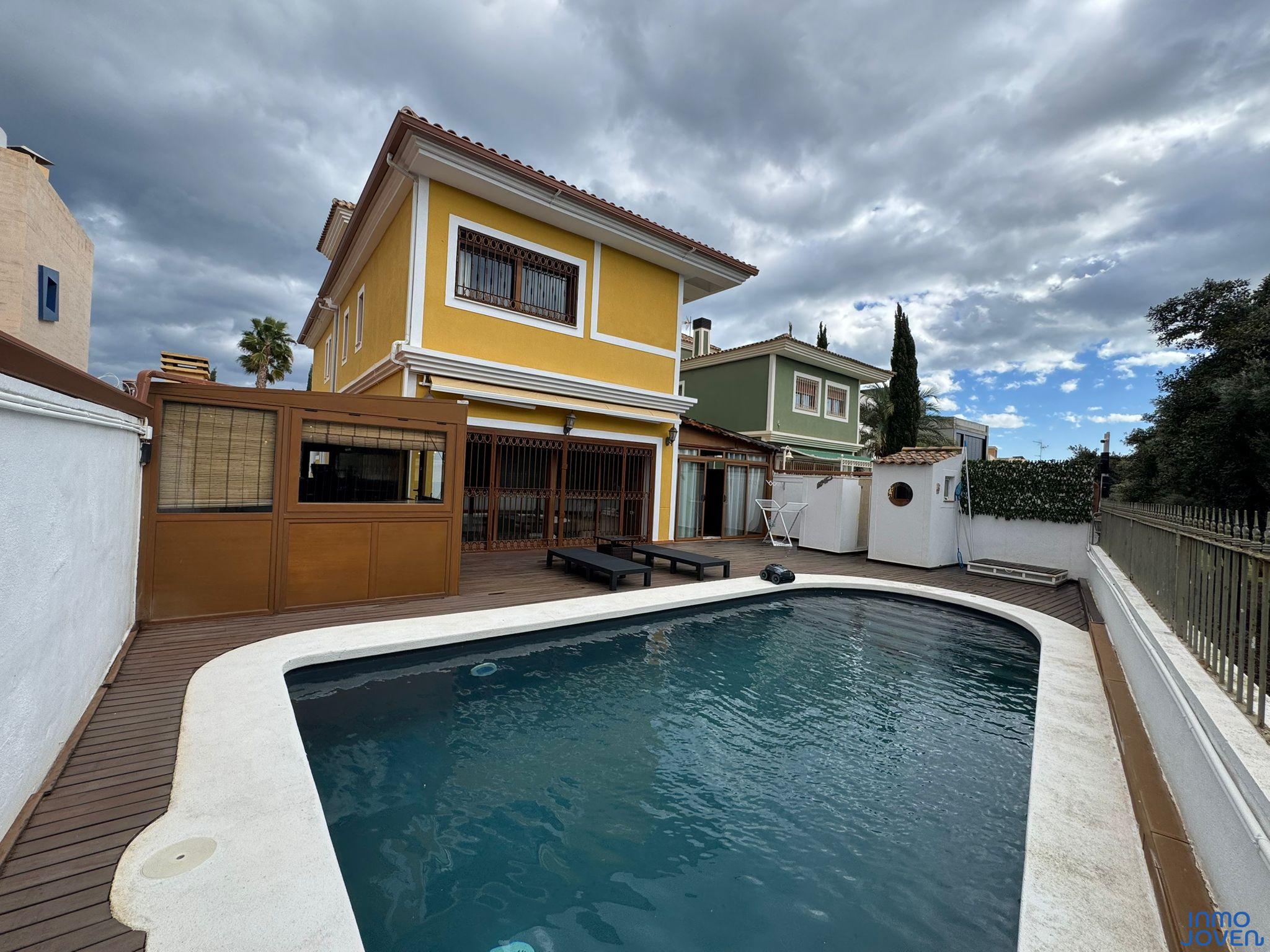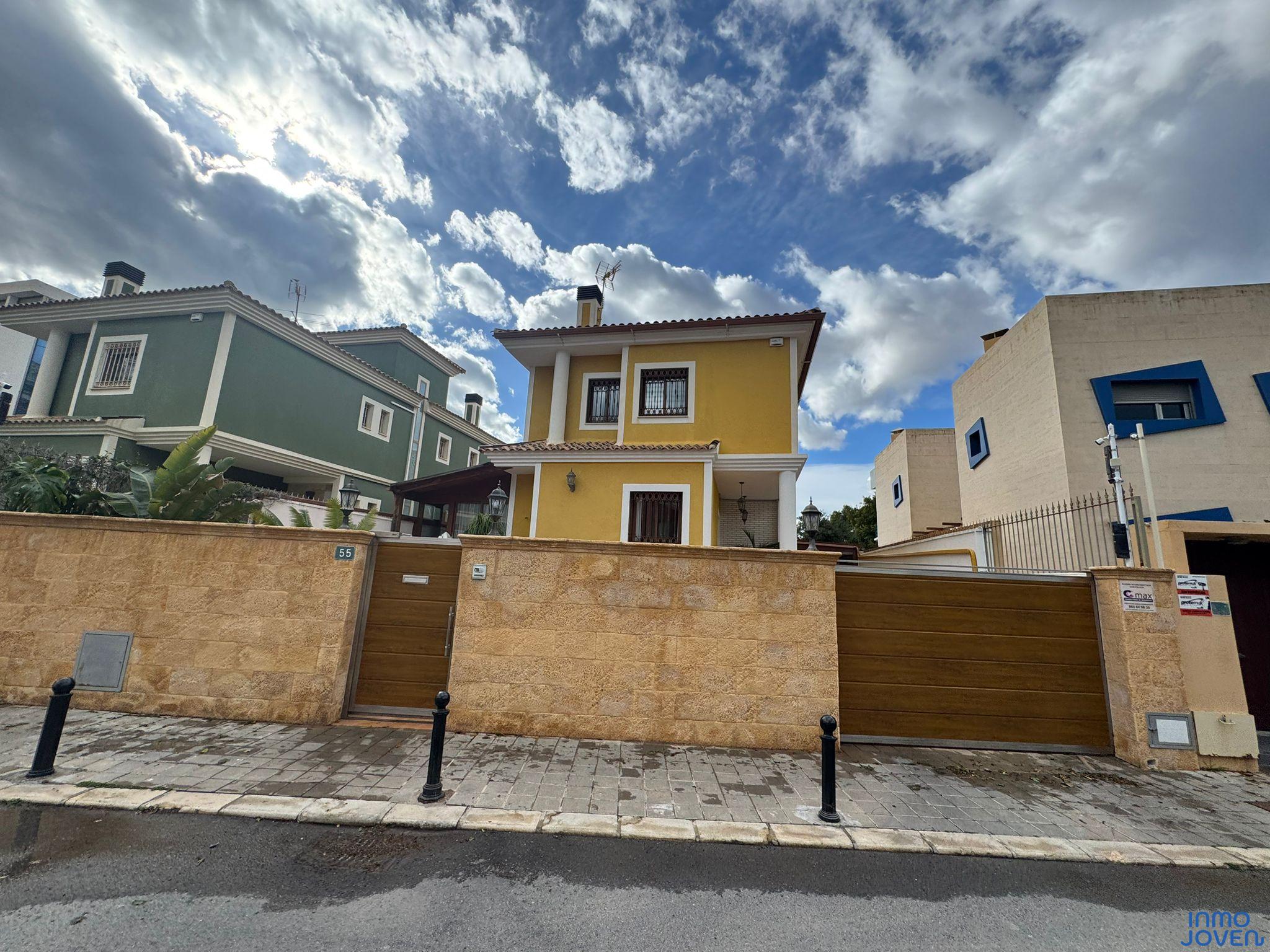 Impresionante villa tipo chalet independiente de 3 plantas ubicada en la prestigiosa zona de San Juan Golf, Alicante. La vivienda cuenta con 356 m² construidos sobre una parcela de 400 m², distribuidos en 5 habitaciones dobles, 4 baños, aseo, y ducha y baño en la zona de piscina. Ha sido completamente reformada con materiales de alta calidad, ofreciendo un diseño a medida con máximo confort y estilo.
